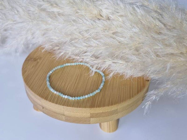 Entdecke unser liebevoll handgefertigtes Armband, das aus 3 mm facettierten Amazonit Edelstein Perlen besteht.